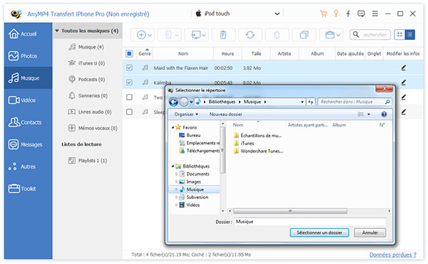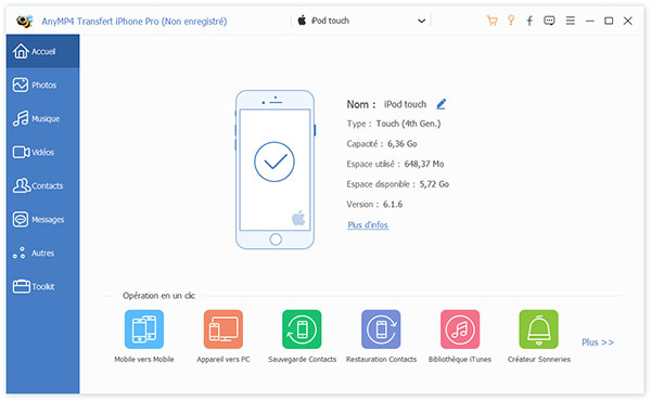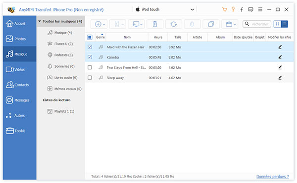 Il existe beaucoup de logiciels de transfert destinés à importer des fichiers iPod vers PC. Dans le tutoriel ci-dessous, on va prendre AnyMP4 Transfert iPhone Pro comme exemple pour vous expliquer comment transférer de la musique iPod vers PC étape par étape.