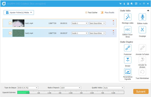 Pour créer un DVD plus efficacement, on peut essayer d'utiliser AnyMP4 DVD Créateur permettant de créer un disque avec tous les formats vidéo populaires.