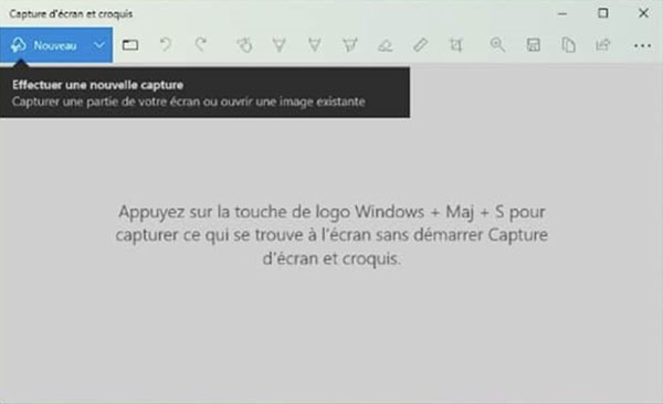 Étape 1. Allez sur Démarrer dans la barre de tâche sur votre Windows 10 et tapez « Capture d'écran et croquis » pour localiser et lancer le programme sur le Windows Store. Après cela, vous pouvez cliquer sur le bouton « Nouveau » pour capturer un écran sur Windows 10.