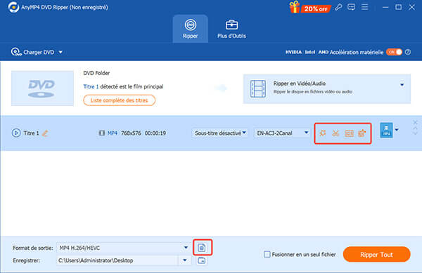 On peut d'abord télécharger la version d'essai de AnyMP4 DVD Ripper sur l'ordinateur. Après avoir installé ce DVD Ripper, ouvrez-le. Et puis, insérez simplement le DVD dans le lecteur de l'ordinateur. Une fois que l'ordinateur détecte les fichiers DVD, vous pouvez ajouter le DVD au programme en cliquant sur le bouton « Charger Disque ».