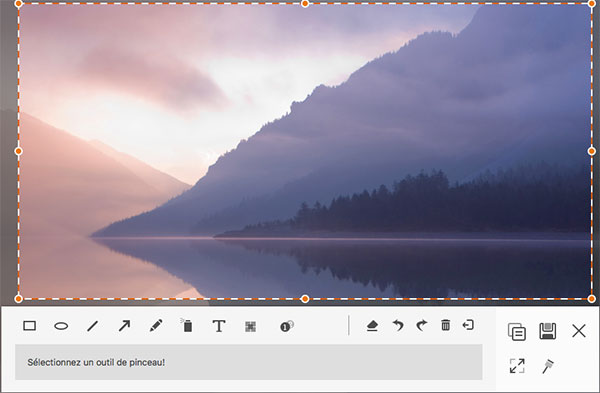 Une fois une capture effectuée, l'image capturée est enregistrée sur le bureau, ou cliquez la miniature de capture d'écran pour la copier ou la modifier.