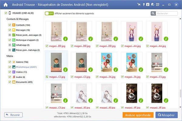 Voici les étapes en détail de récupérer des donnes supprimées à partie de l'appareil Android: