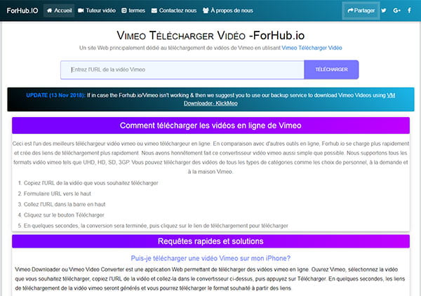 Vous pouvez télécharger Vimeo en MP3 en ligne à l'aide du site ForHub.IO, voici le tutoriel de téléchargement.